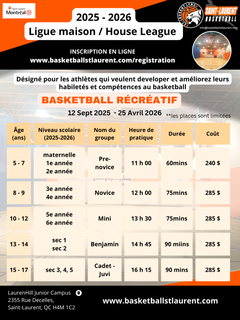 Cliquer ici pour la Politique d’annulation et de remboursement de Basketball St-Laurent